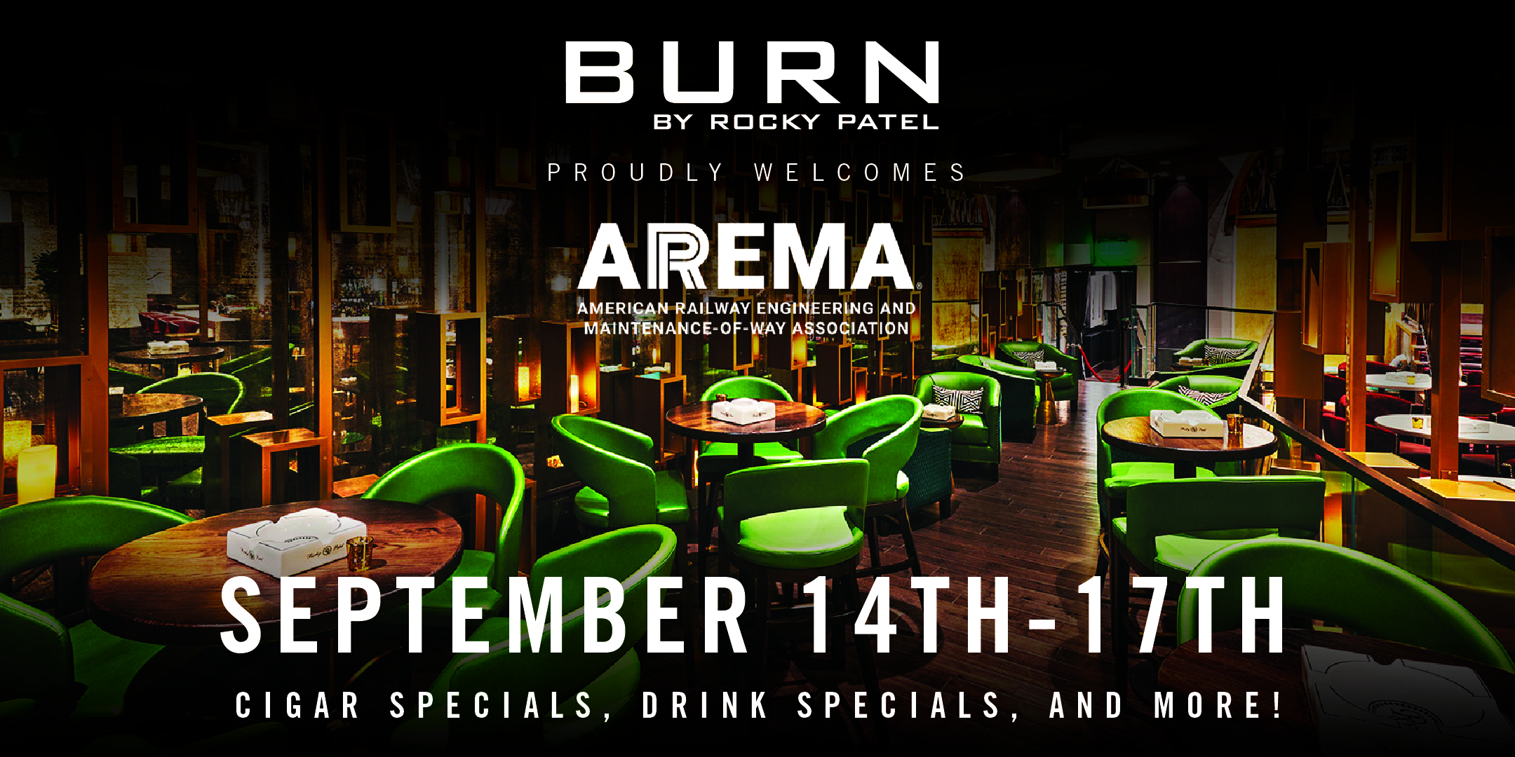 In town for the AREMA Convention? Make BURN your go-to destination! From open to close, we’re inviting guests to enjoy premium cigars, craft cocktails, and the unmatched BURN lounge experience.