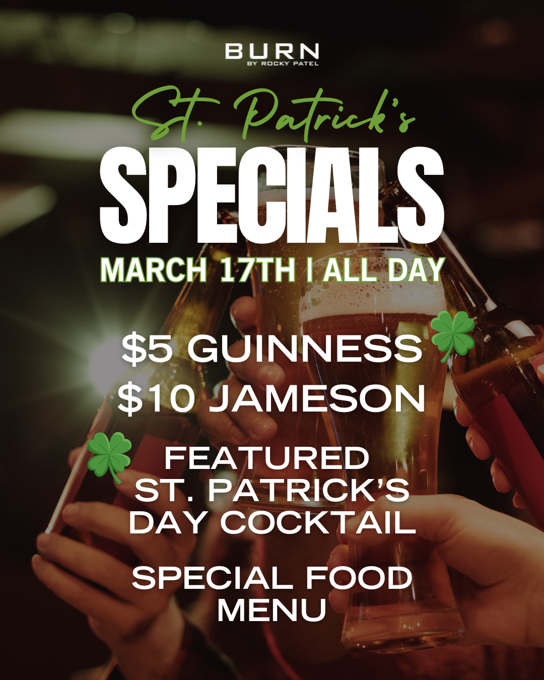 For bottle service, or table reservations, please reach out to Melissa@burnbyrockypatel.com.